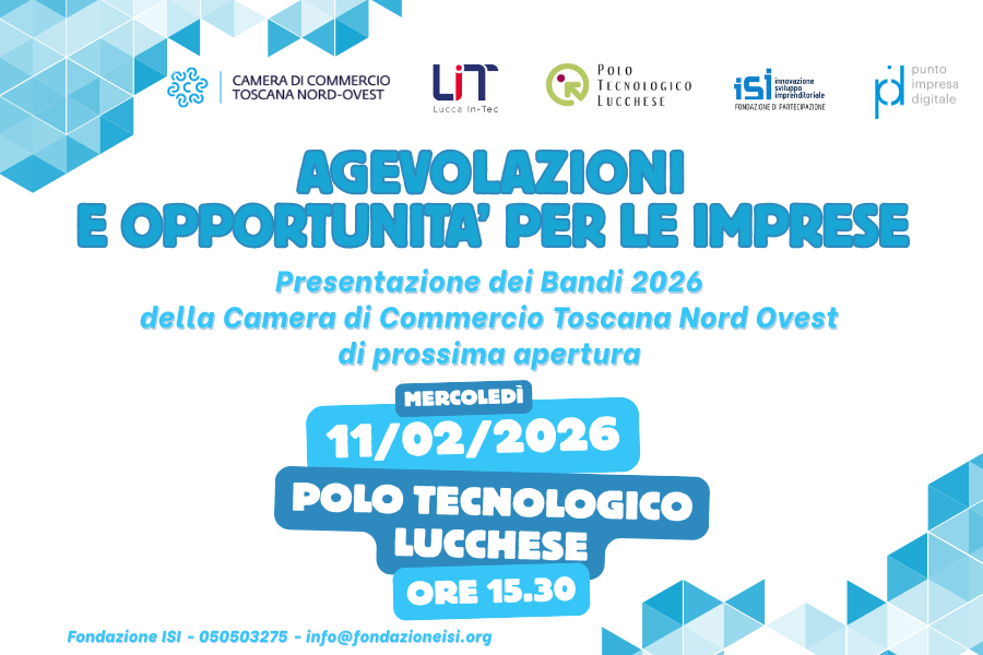 Fondazione ISI, organizza un incontro dedicato ai bandi di prossima apertura promossi dalla Camera di Commercio della Toscana Nord Ovest.