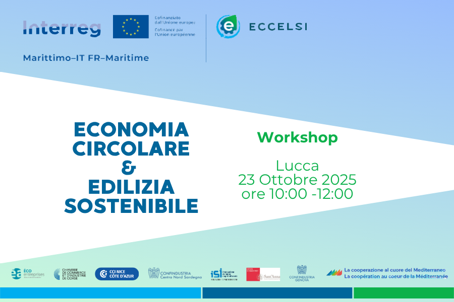 Workshop Economia Circolare & Edilizia SostenibileData: 23 ottobre 2025 10:00 Nell’ambito del Progetto ECCELSI, co-finanziato dal Programma Interreg Italia-Francia Marittimo, Fondazione ISI organizza un workshop dedicato all’economia circolare e alla simbiosi industriale nell’edilizia. |